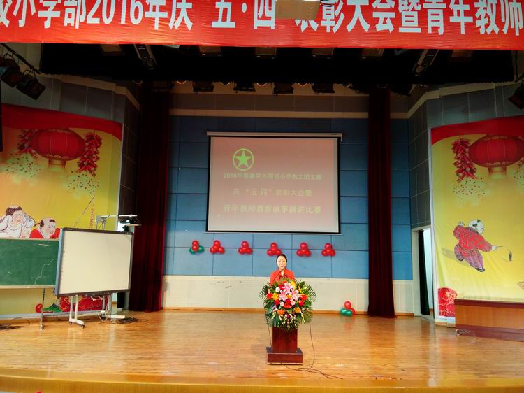 5月4日上午,德外小學(xué)團(tuán)支部舉行了慶“五四”表彰大會(huì)暨青年教師教育故事演講比賽。學(xué)校校長(zhǎng)、黨支部書記出席了大會(huì),學(xué)校50余名青年教師參加了大會(huì)。大會(huì)在中國(guó)共產(chǎn)主義青年團(tuán)團(tuán)歌聲中拉開序幕。董濤校長(zhǎng)、黨支部書記黃伯軍、團(tuán)支部書記黃鳴霄分別致辭,并對(duì)青年教師提出了殷切希望。
